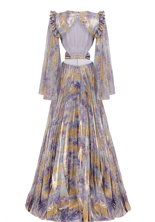 PLEATED CHIFFON MAXI DRESS