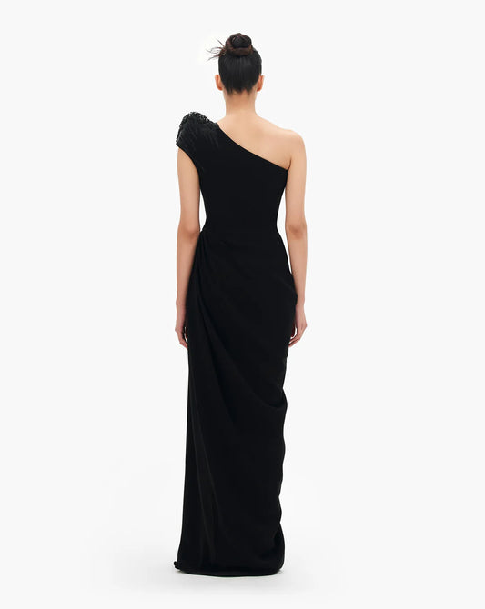 MONOCHROMATIC RUFFLE DRAPE GOWN