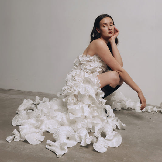 CORSET WITH MERINGUE FLOUNCES AND SKIRT MIDI