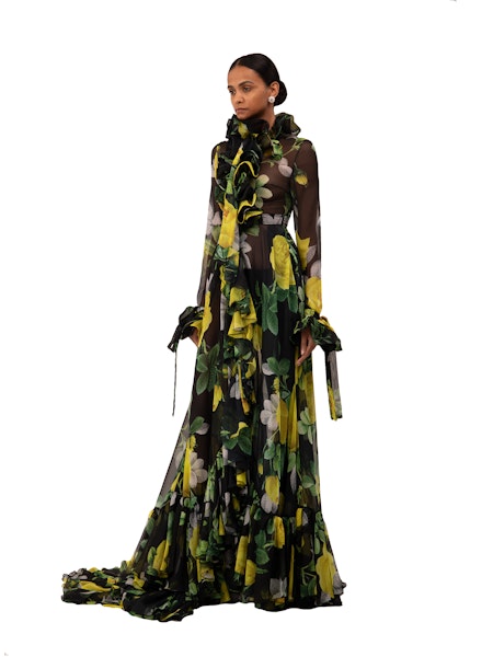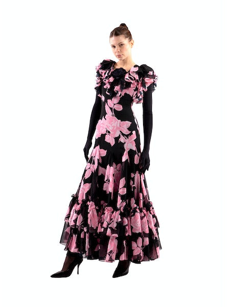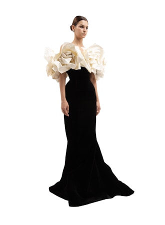 RUNWAY BLACK VELVET GOWN + SILK IVORY FLOWER