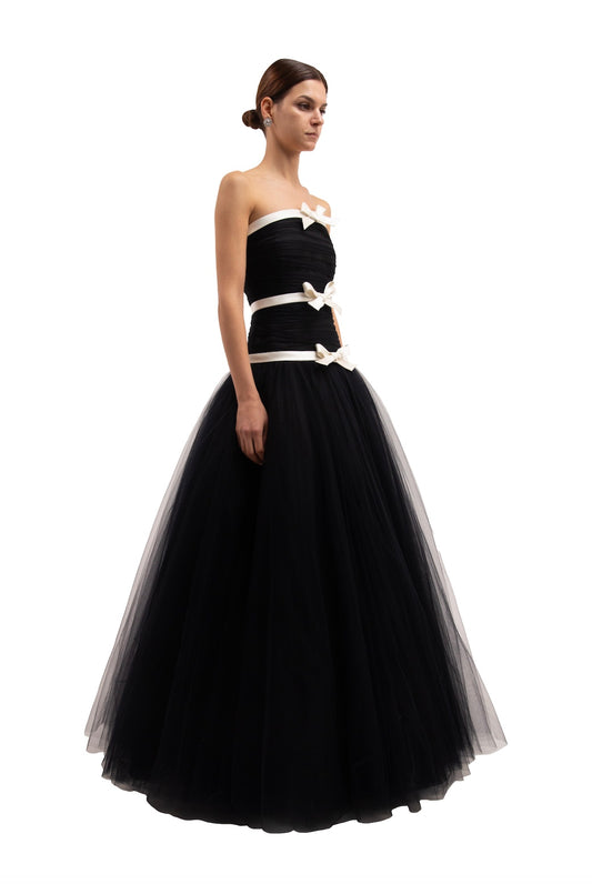 RUNWAY BOW DRESS LONG - SILK VELVET